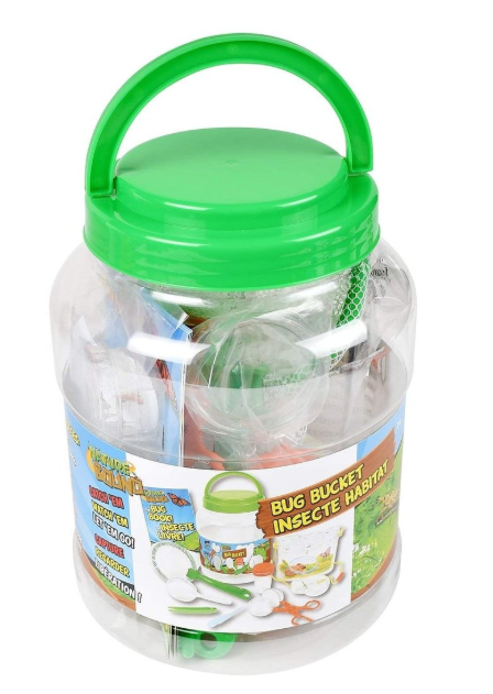 - 10-piece set makes exploring nature fun and includes: Habitat with strap and lids, bug bottle, net, bug tongs, tweezers, magnifying glass, feeding pipette, bug book and handy storage bucket.