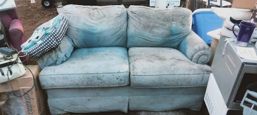 Old and discolored, it definitely needs a good cleaning and then maybe a cover cloth