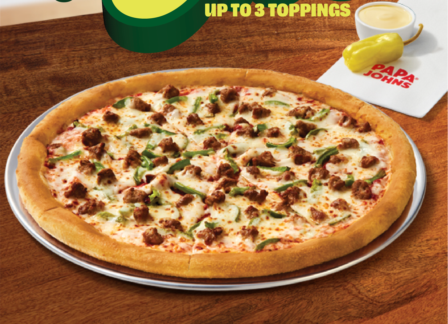 Papa Johns 3 toppings for $15.99