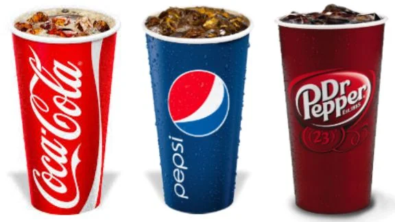 Coca Cola, Pepsi Cola, Sprite, Dr. Pepper, Code Red Mountain Dew, Mountain Dew, Diet Pepsi, Diet Coke